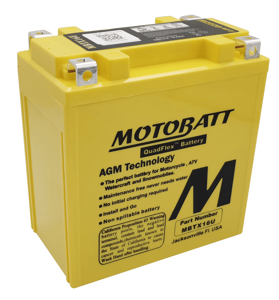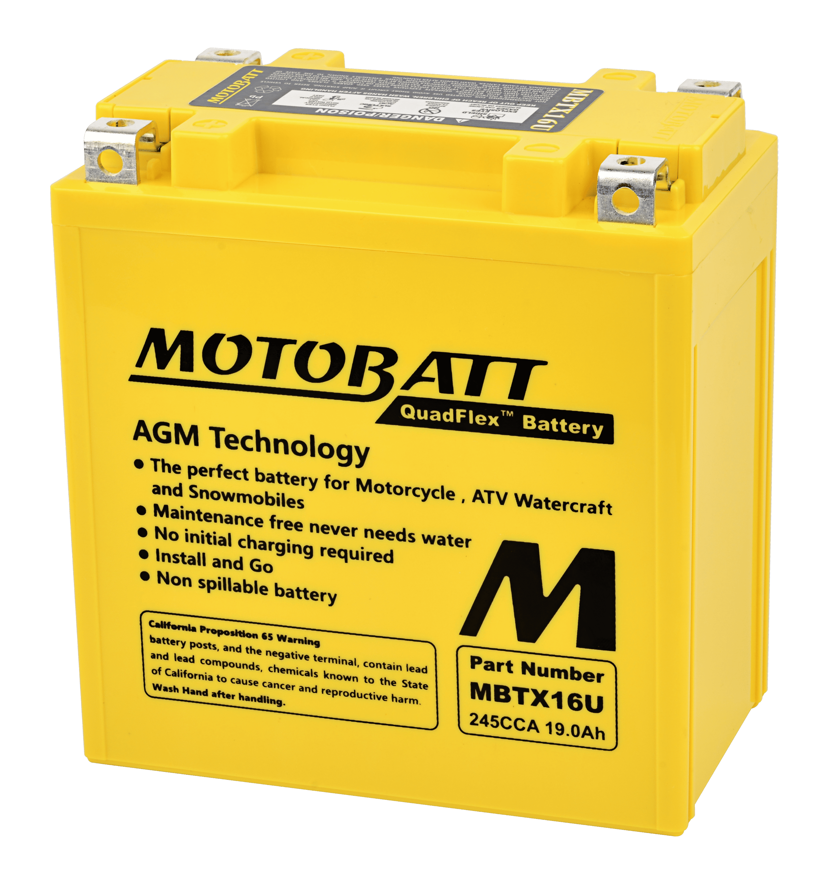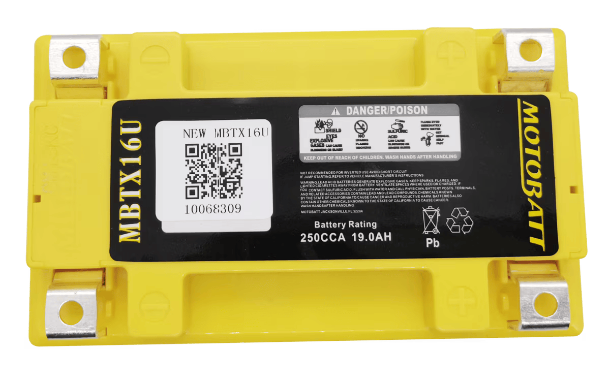 توفر بطاريات Motobatt Quadflex أفضل توازن بين أمبيرات الساعة (AH) وأمبيرات التشغيل البارد (CCA) -18 درجة مئوية. ويتحقق ذلك من خلال زيادة حجم الألواح الداخلية، واستغلال المساحة غير المستخدمة في البطاريات الأخرى.